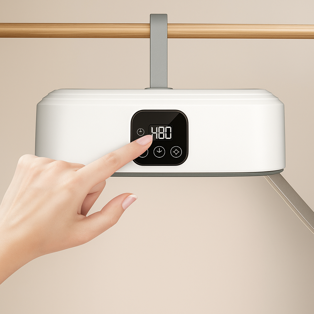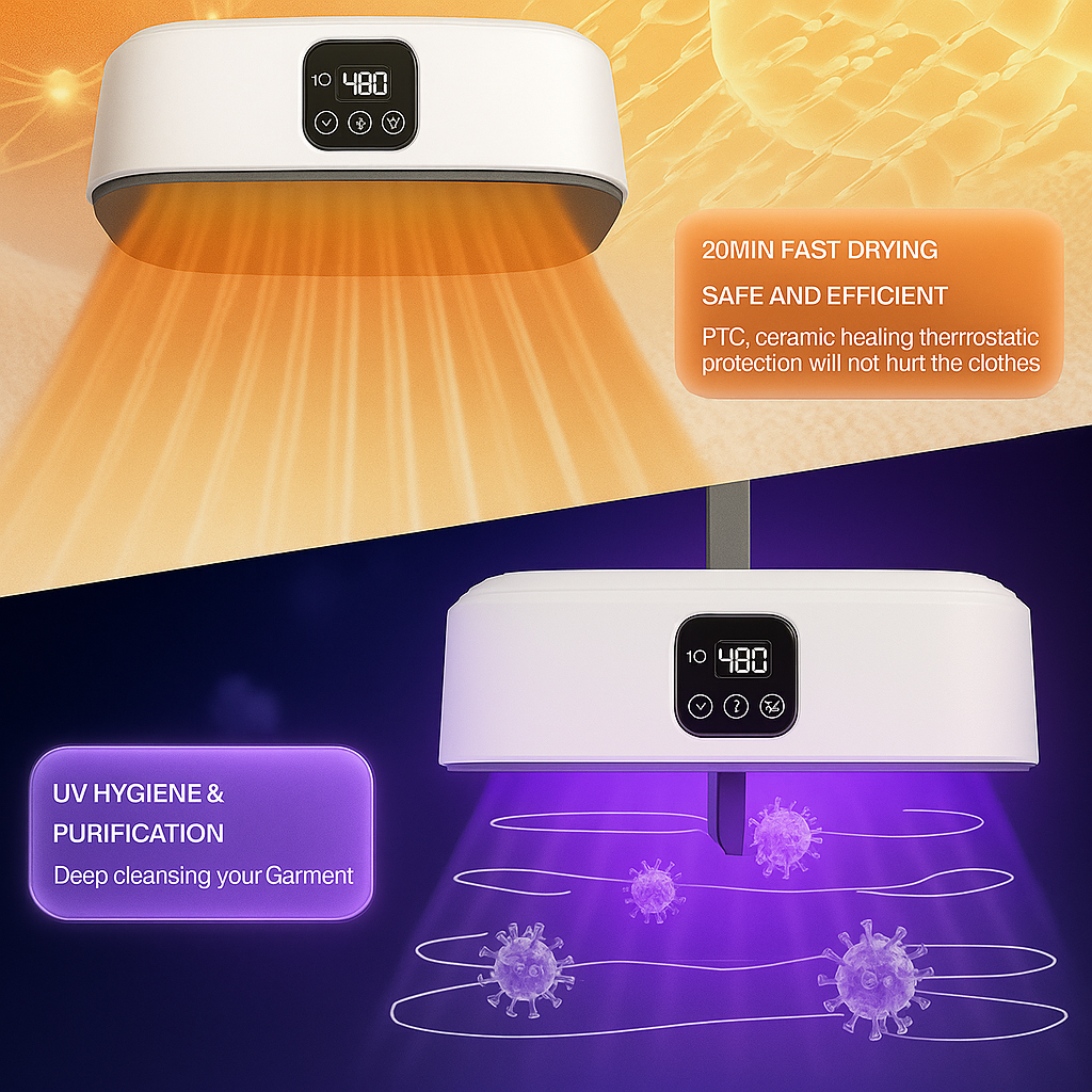 Impeccable Cleanliness: Revitalize your garments with the built-in LED UV system that ensures impeccable cleanliness and purity. This portable clothes Warmer combines heating and UV purification, making it a reliable electric clothes Warmer for maintaining garment hygiene.