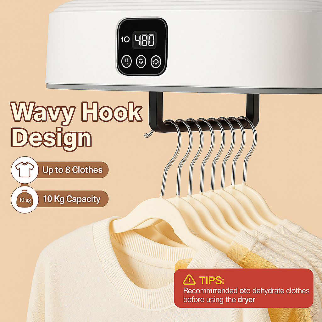 Efficient Warming Technology: This clothes Warmer machine quickly dries up to 9 clothes in just 20 minutes. The electric cloth Warmer utilizes advanced heat and airflow technology to eliminate moisture, offering a convenient and efficient alternative to traditional air-warming.